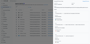 Agentic identity management, which provides a centralized view of all agentic identities–dynamically created or manually registered–connecting to an organization’s applications, APIs, and MCP servers. Each agent gets a dedicated identity and attributes such as the associated user, tenant, tool-level scopes granted, and OAuth client ID.